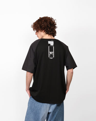 A straight cut t-shirt with raglan sleeves and round neck.