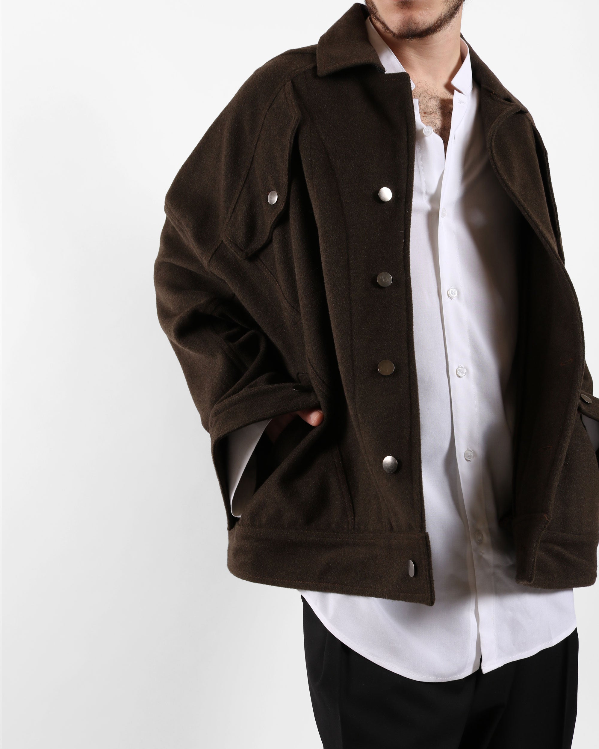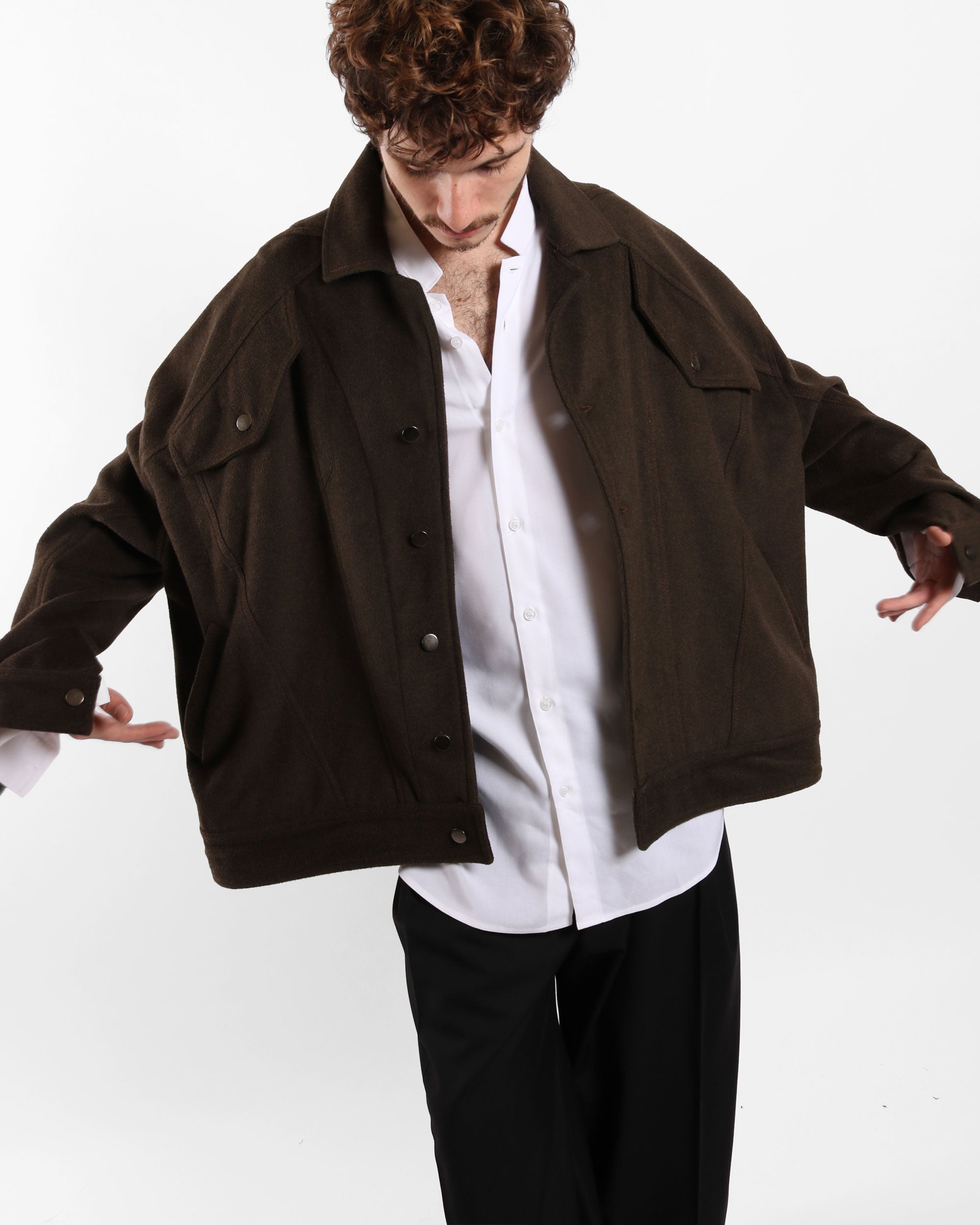 ROUNDED DENIM JACKET WOOL (BROWN)