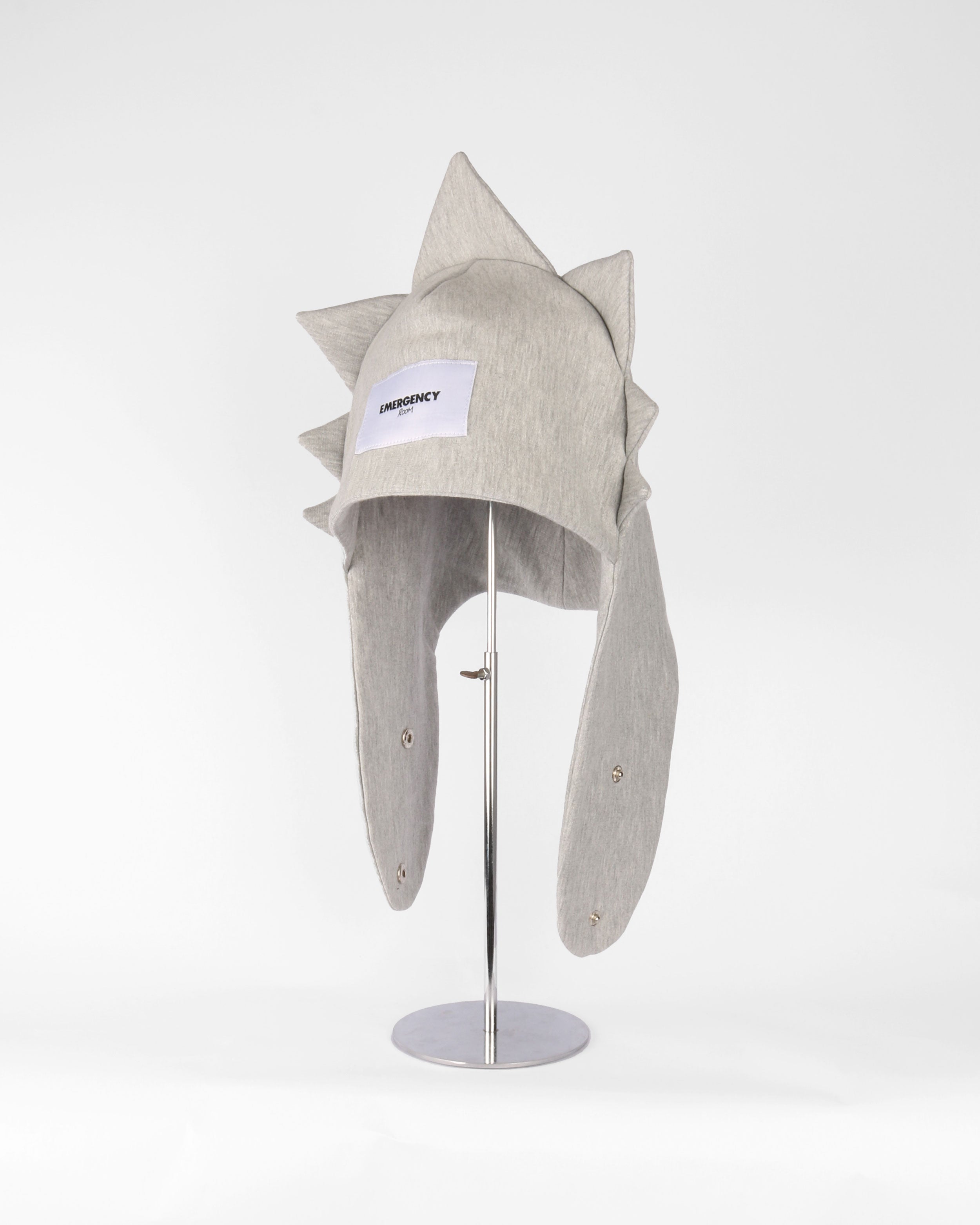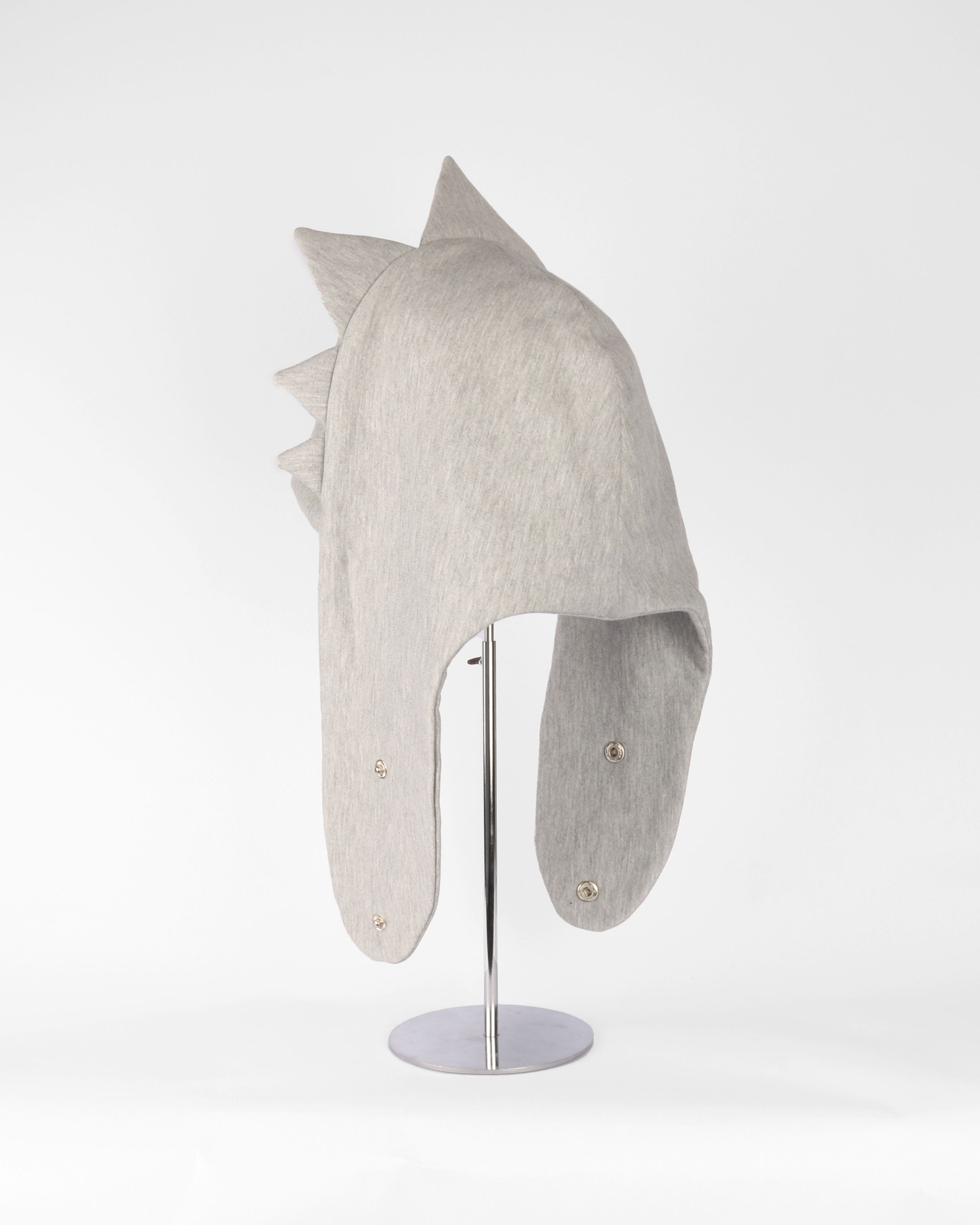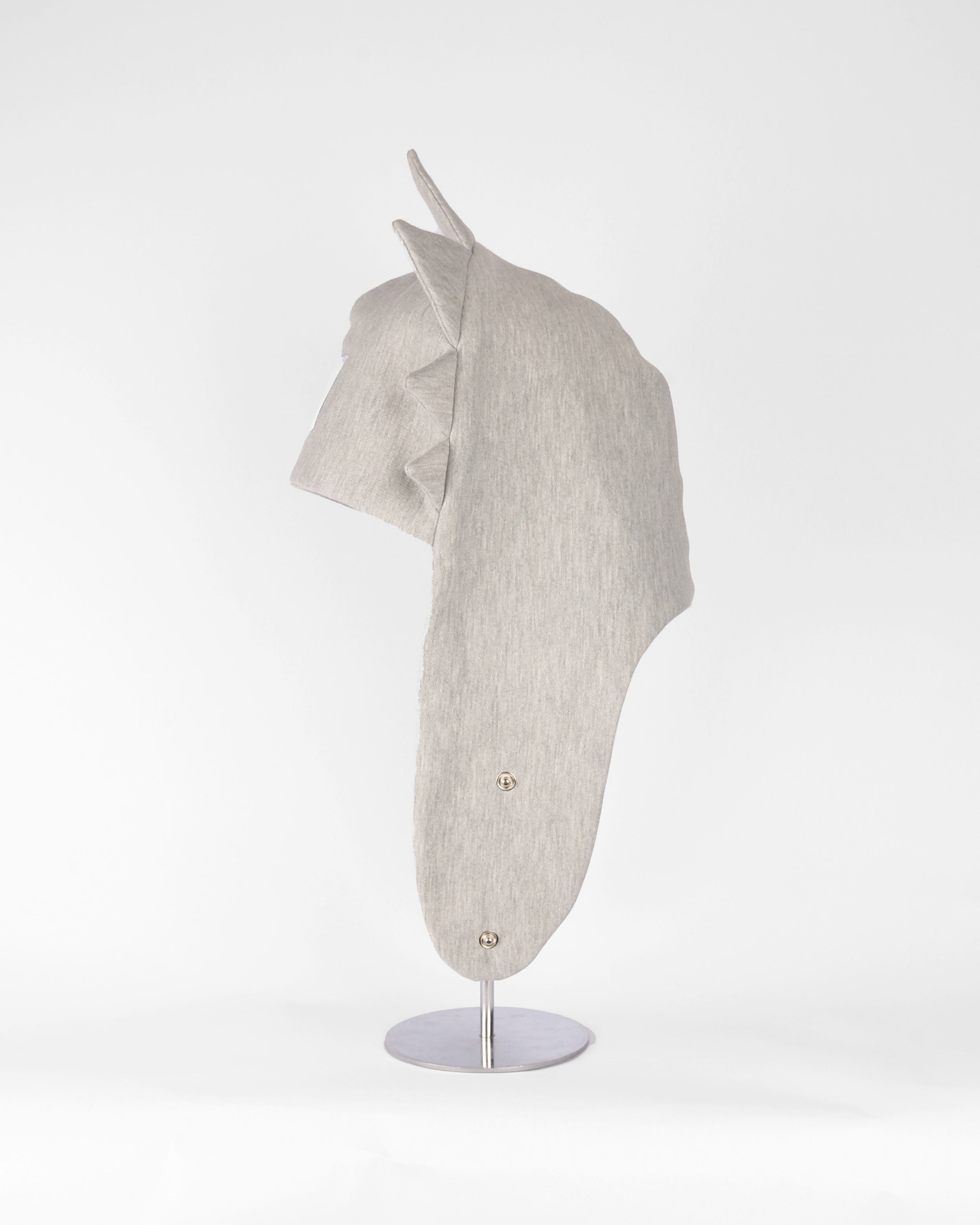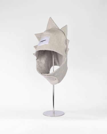 ThePetit Soleil is a sculptural headpiece crafted from soft fleece. Defined by its signature sun-like spikes, it creates a striking silhouette that frames the face while adding a playful yet powerful edge to any look.
